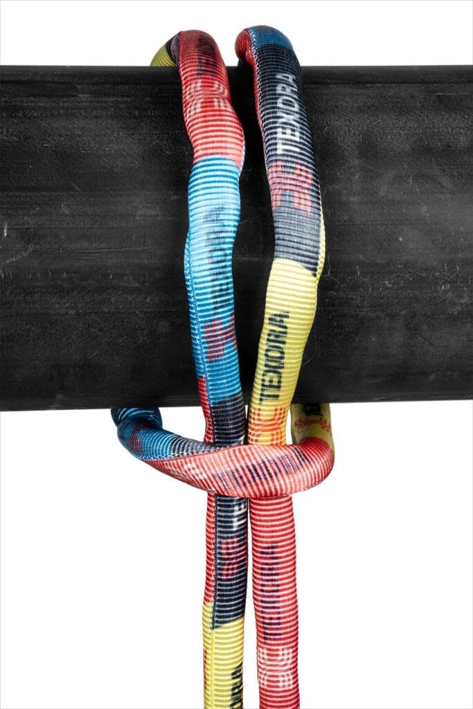 Texora no permite hacer nudos en las eslingas ni atar dos eslingas juntas porque reduce significativamente la resistencia a la rotura.