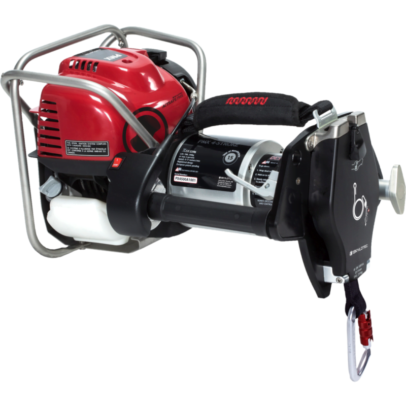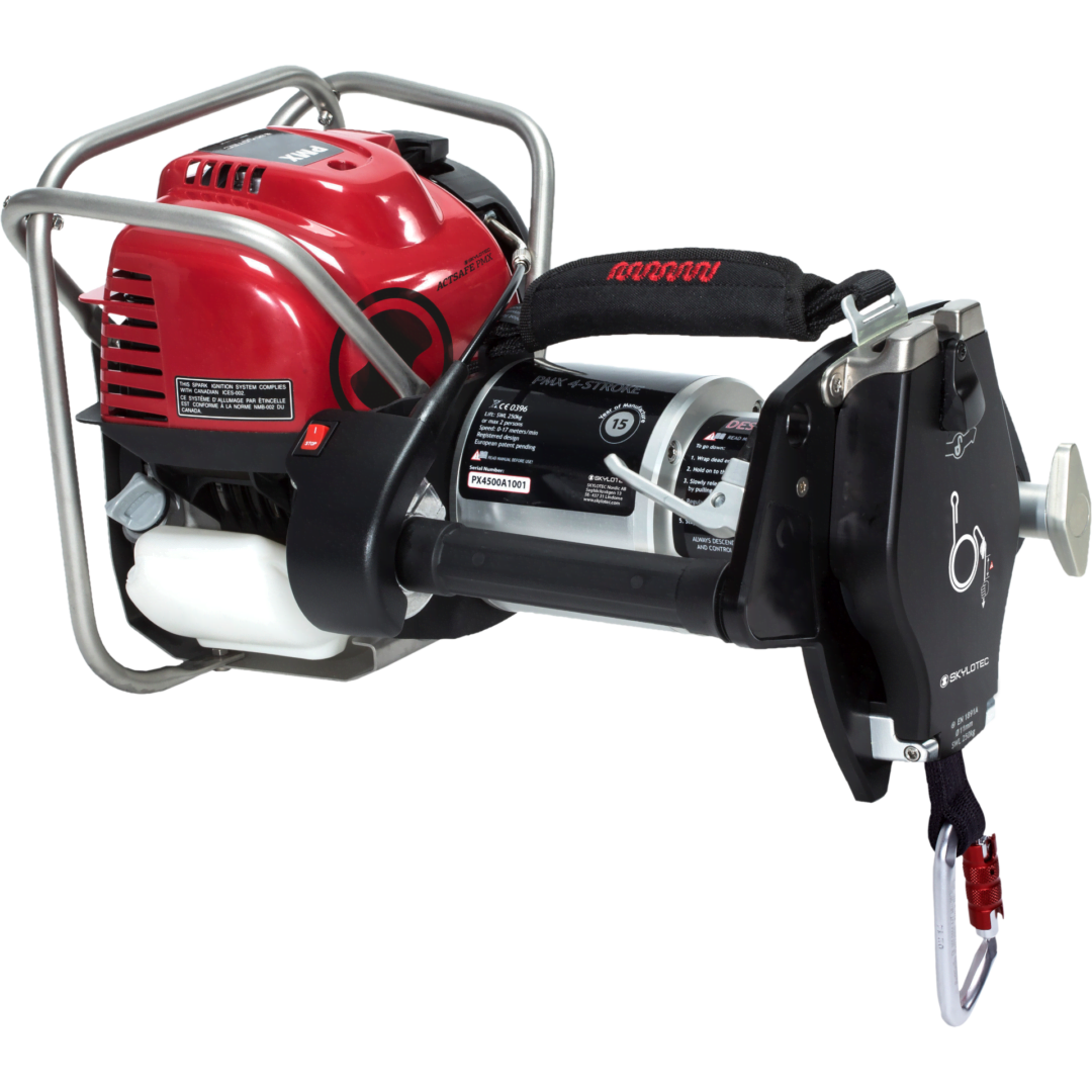 El torno de cuerda ActSafe PMX es la generación mejorada del ascensor de gasolina. El ascensor ActSafe PMX de gasolina tiene su singularidad en la combinación de fuerza y el pequeño tamaño portátil. Con un peso de tan sólo 13 kg y un recorrido de cuerda de al menos 700 metros con un solo depósito de combustible, es la herramienta que le llevará a los trabajos duros y sucios en los que necesita poder confiar en su equipo. Las características de este cabrestante de gasolina incluyen un sistema de agarre de cuerda cerrado y un acelerador que se acciona con la mano izquierda. La palanca de descenso es fácil de manejar para bajar por la cuerda, y toda la robustez de este Power Ascender lo hace perfecto para una lista interminable de operaciones de elevación.
