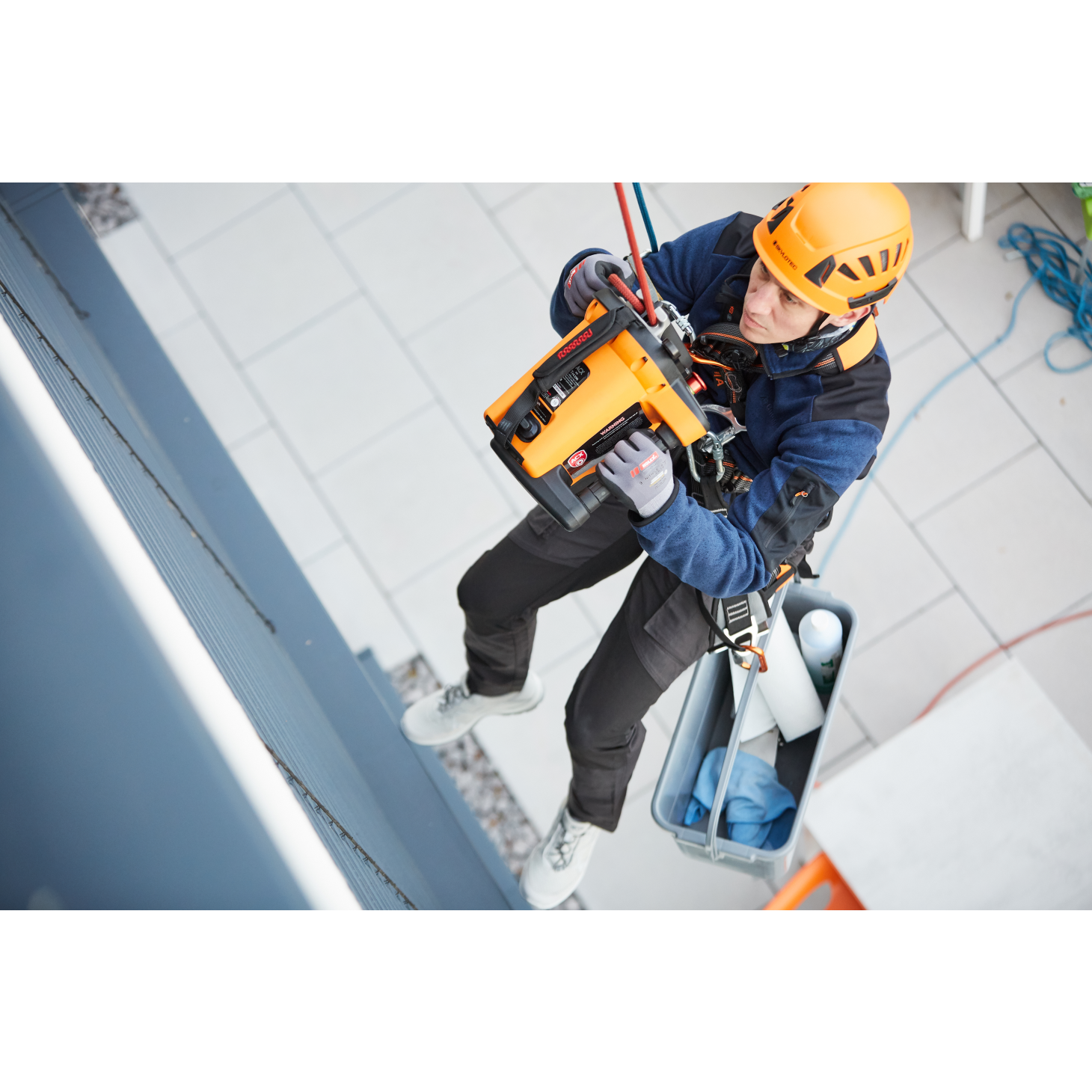 ACX se utiliza, entre otras cosas, para la limpieza de fachadas o ventanas, para el mantenimiento de estructuras de edificios complejas, para el mantenimiento de palas de aerogeneradores o para el transporte de cargas en mástiles. El ACX POWER ASCENDER simplifica y acelera considerablemente el trabajo en estructuras complejas y hace superfluos los costosos sistemas de acceso o plataformas elevadoras. Innumerables escenarios de rescate también se pueden llevar a cabo de manera eficiente y con el mínimo esfuerzo con el ACX. Forma un sistema altamente flexible para una limpieza o mantenimiento fácil y rentable. En caso de emergencia, el ACX se puede controlar por control remoto. El funcionamiento y uso del ACX se puede aprender en cursos de formación especiales. – Simplifica y acelera el trabajo en estructuras de difícil acceso – Aplicación cuidadosa – Control por control remoto hasta 150 mts. CARACTERÍSTICAS