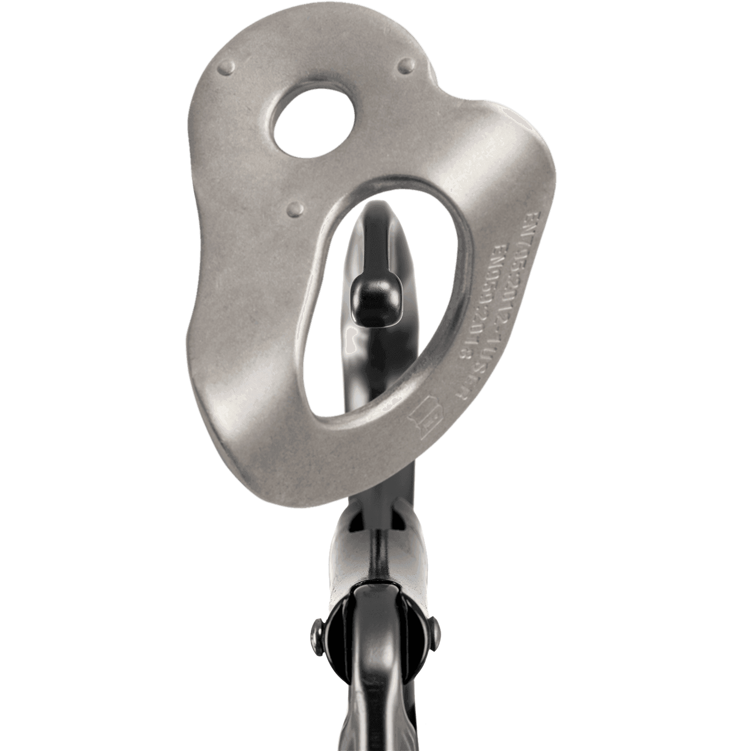 Amplia zona de contacto: Sus 10,5 mm de ancho permiten trabajar la cuerda sobre un radio mayor. Esto alarga la vida útil de ambos elementos, cuerda y mosquetón.