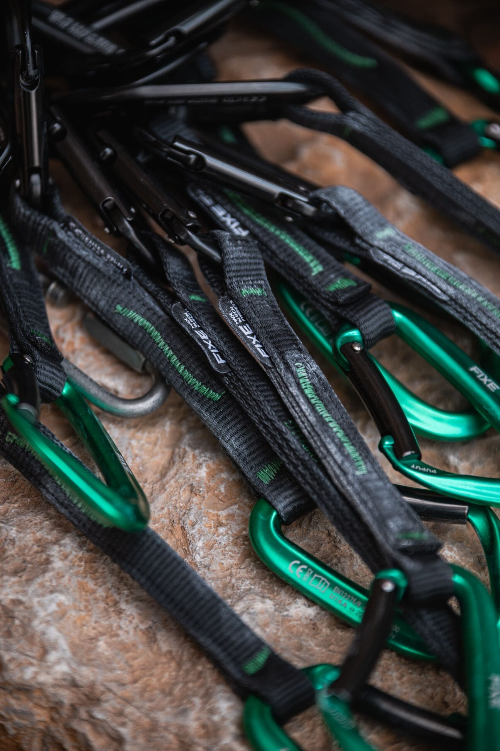 Cinta de poliamida: Fabricada con el mismo material que las cuerdas dinámicas de escalada, la poliamida. Un material muy resistente para alargar la vida útil del conjunto.