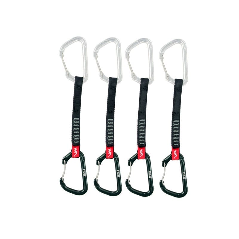 Cinta exprés ligera y todo terreno con mosquetones anchos para facilitar su utilización. Mosquetones diferenciados con gatillo recto para la chapa y curvo para facilitar la colocación de la cuerda.