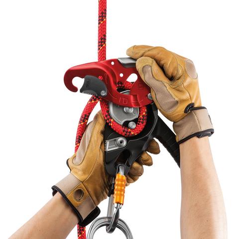 – Una vez bloqueada, la cuerda puede ser recuperada sin tener que manipular la empuñadura, lo que permite convertir un sistema de izado en reversible o realizar fácilmente cortos ascensos por cuerda.