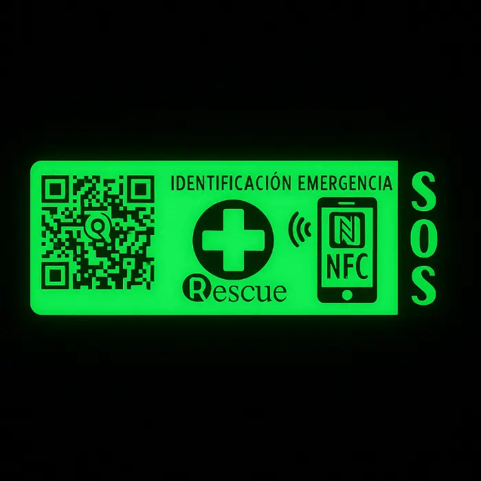 Identificador de emergencia Fluorecente QR-NFC – QRESCUEID
