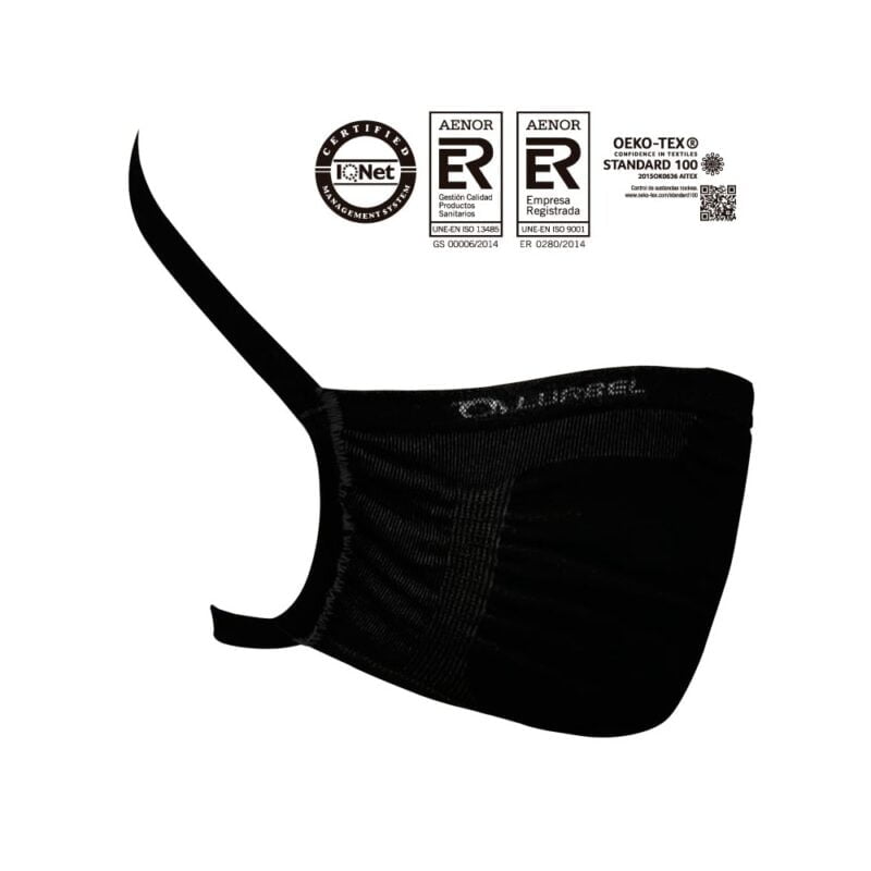 La mascarilla protectora Faz está desarrollada con la novedosa Tecnología Regenactiv® (textil patentado) basada en la interacción de dos hilos tejidos entre sí. Un hilado principal, natural y biodegradable, de viscosa absorbente con partículas de quitina entrelazado con un segundo hilado de poliamida ionizada con plata sobre hilo de elastano.
