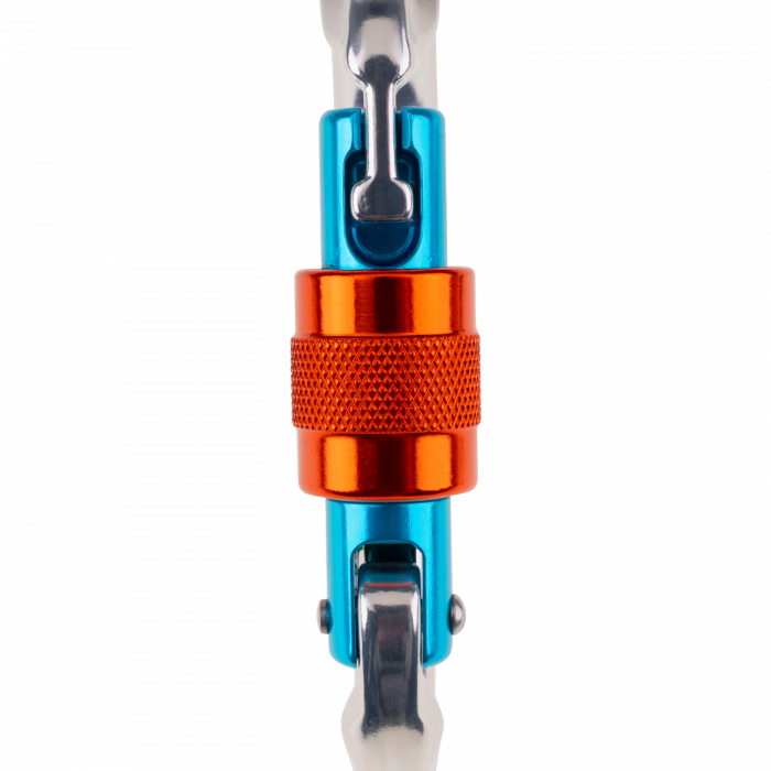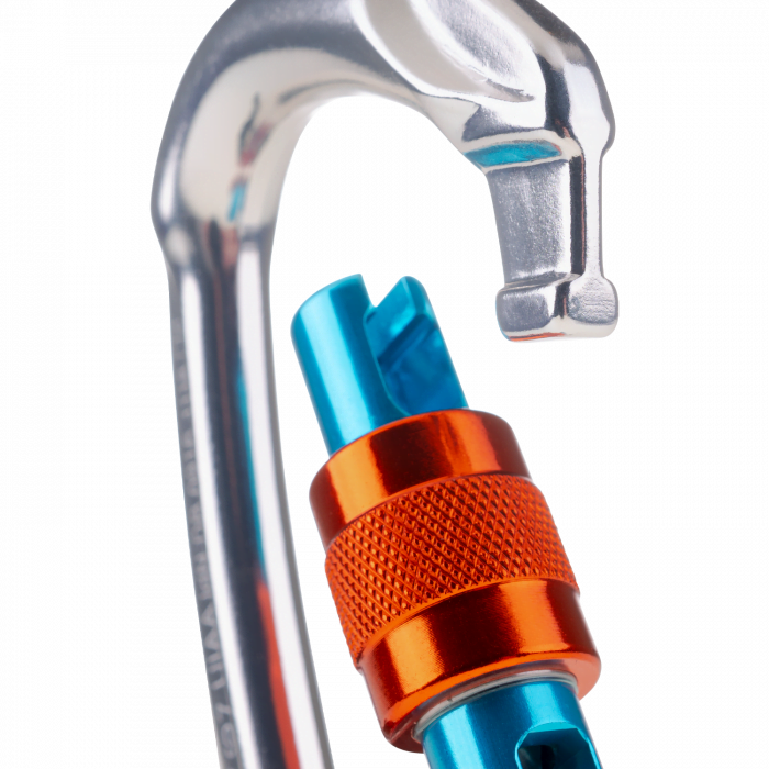 Mosquetón compacto de rosca especialmente adaptado a las cuerdas simples, para conectar el sistema de aseguramiento.