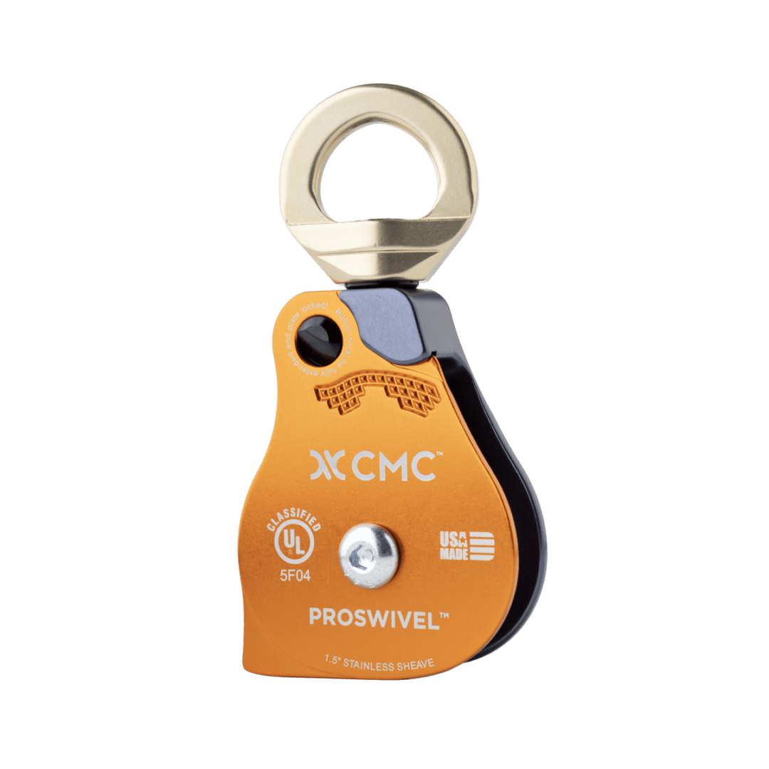 Las poleas CMC ProSwivel combinan un pivote y una polea en una sola herramienta con una placa lateral única que se abre mientras la polea todavía está unida al ancla. Al asociarse con Rock Exotica, CMC ahora ofrece más poleas giratorias certificadas según los estándares NFPA. Nuestra línea ProSwivel renombrada y ampliada incluye ocho poleas para elegir. Puede elegir la mejor polea CMC ProSwivel para el trabajo, agrandando cuando necesite más eficiencia.