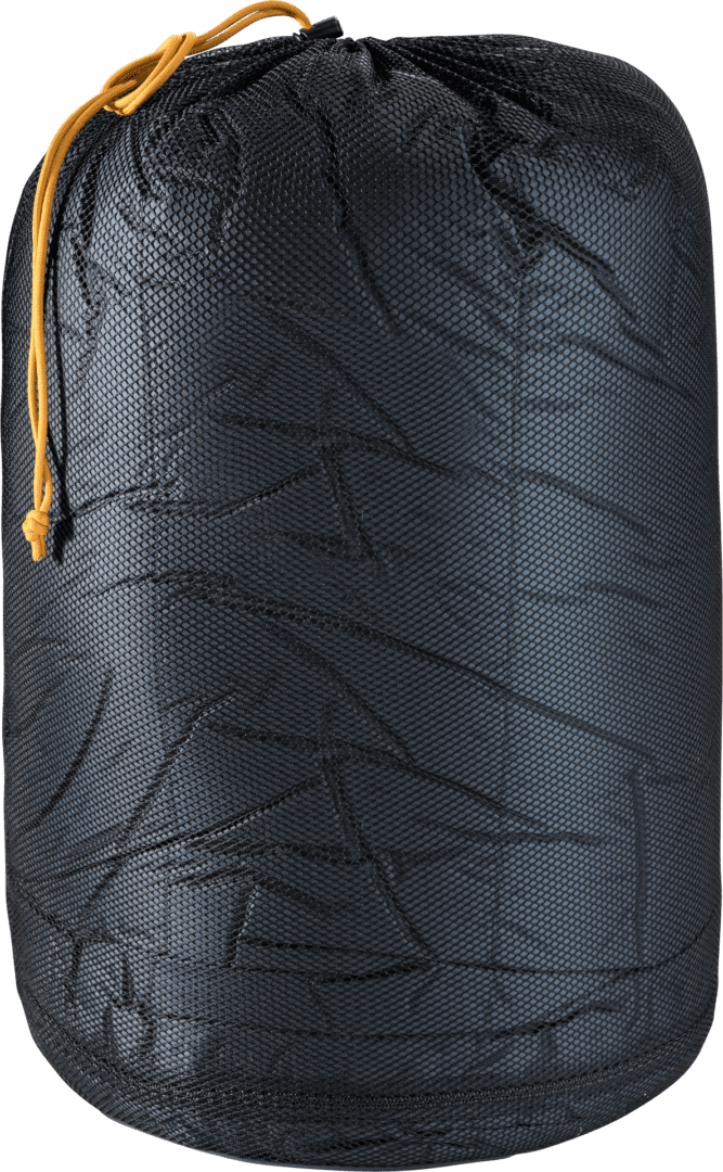 La bolsa ligera de material de compresión con nueva compresión lateral significa que la bolsa se pliega para guardarse dentro de una mochila. Sin embargo, recomendamos guardar el saco de dormir suelto en el saco de almacenamiento de malla.